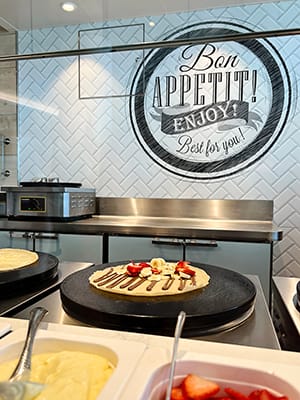 The name almost makes this feel like it’s the buffet but this is in addition to the Windjammer Buffet. I could just say food as a favorite, but I expect cruise food to be good and ICON meals were scrumptious, but this is an additional new concept that we really enjoyed! A made to order Crèpe Station was my absolute favorite! Nutella and Fruit Crepes are just the best thing ever! Then there was Greek and Asian Station, Specialty Mac and Cheese and a Sandwich and Salad stand! It was almost like a mall food court because of the variety of options but so much better and the views just put it over the top! With more than 40 restaurants and bars, it is safe to say you will NEVER be hungry or thirsty on the Icon of the Seas!